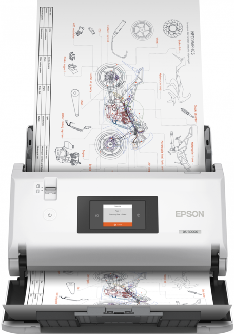 Der WorkForce DS-30000 ist der erste kompakte DIN A3-Desktop-Dokumentenscanner von Epson. Der Scanner wurde speziell für Büros mit größeren Scanvolumen entwickelt. Er verfügt über einen Dokumenteneinzug mit hoher Kapazität, zahlreiche Medienscanfunktionen und einen benutzerfreundlichen Touchscreen und ermöglicht das Scannen von bis zu 30.000 Seiten pro Tag.